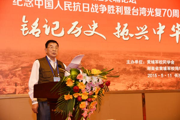 中國臺灣網5月11日長沙訊 (記者 李桂英)由黃埔軍校同學會和湖南省黃埔軍校同學會聯合舉辦的紀念中國人民抗日戰爭勝利暨臺灣光復70周年第九屆黃埔論壇,于5月11日在湖南長沙舉行,兩岸150余位有關人員共聚一堂,以“銘記歷史,振興中華”為主題,共憶當年抗戰崢嶸烽火,共商共圓中國夢。