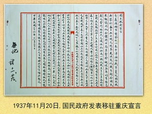 1937年11月20日,國民政府發表移駐重慶宣言