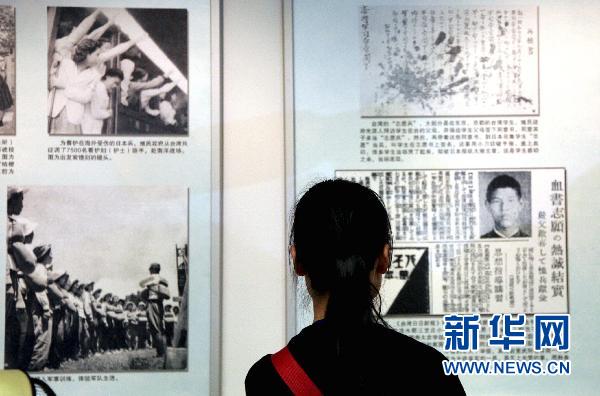 8月15日,參觀者觀看《不能忘卻的歷史》展覽。當日是中國人民抗日戰爭勝利65周年紀念日,《不能忘卻的歷史——紀念中國人民抗日戰爭暨世界反法西斯戰爭勝利65周年特別展》在侵華日軍南京大屠殺遇難同胞紀念館開幕。 新華社發(王新 攝)
