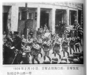 1939年2月10日,日軍占領??诤?,日軍儀仗隊經過中山路一帶。 (資料圖片)