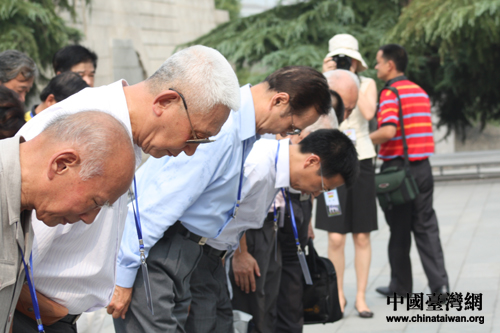 海內外黃埔軍校同學會的校友、親屬、專家學者向遇難同胞三鞠躬。(中國臺灣網 肖燕 攝)