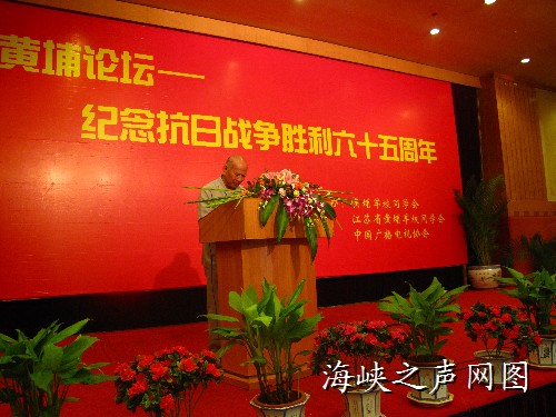 海峽之聲網訊,(圖、文:龔天寧)今日上午9點,《黃埔論壇——紀念抗日戰爭勝利65周年》在南京開幕,兩岸和海外黃埔同學及其家屬、退役將領、專家學者等100多人共聚一堂,圍繞“黃埔精神”、“抗日戰爭勝利65周年”、“兩岸的共同安全”等主題發表演講、互相交流。這次的黃埔論壇由黃埔軍校同學會、江蘇省黃埔同學會、中國廣播電視協會主辦,其中一大看點是多位臺軍退役高級將領參加此次論壇,包括臺灣原陸軍總司令陳廷寵上將、臺灣“陸軍軍官學?!毙S褧L寧攸武中將、臺灣原南警部司令劉繼正中將、臺灣原陸軍學院院長胡筑生中將等,另外,曾任臺軍最高領導人的陳履安先生(陳誠將軍之子)也參與了此次論壇。上午的論壇活動結束后,下午,與會代表們將參觀侵華日軍南京大屠殺遇難同胞紀念館,敬獻花圈。