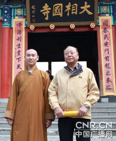 另外,看到少林寺和大相國寺,這兩個雖然是一個寺廟,但是它對我們中華文化的影響很大。中國人愛好和平是多方面的,一個我們強調的是儒家思想,儒家思想就是世界大同的思想,也就是以人民為主的民本思想,另外一個佛家教育的基本也是勸人為善的,不殺生這是最基本的,這就證明他們的出發點都是勸人為善的一個基本的教義。所以,我們中國人能夠在世界上被人家尊重,是一個愛好和平的民族。所以,這兩個寺廟我們看起來也非常感慨。我感慨的就是我們戰爭期間遭到不少的破壞,我們現在在復原,希望能夠繼續在這方面多做努力和推動,希望我們的文化方面能夠不只是在我們中國受到大家重視,也希望向世界推廣。