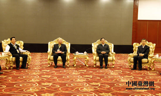 4月10日下午,河南省政協主席葉冬松在鄭州會見了參加癸巳年黃帝故里拜祖大典的臺灣統派人士和退役將領參訪團。(中國臺灣網 李丹 攝)