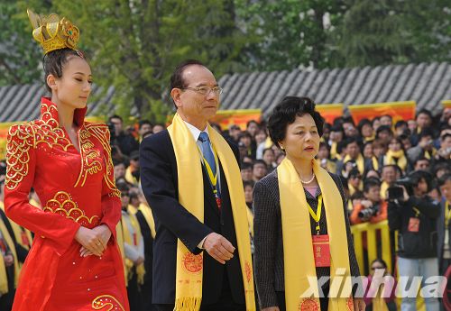 4月16日,國民黨副主席林豐正和夫人參加黃帝故里拜祖大典。新華社記者趙鵬攝