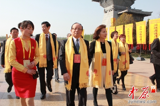 中原網4月12日9時12分新鄭訊 剛剛,中國國民黨副主席蔣孝嚴先生與夫人抵達癸巳年黃帝故里拜祖大典故里祠前,蔣孝嚴先生寫下了“尋根溯源 萬流歸宗”。