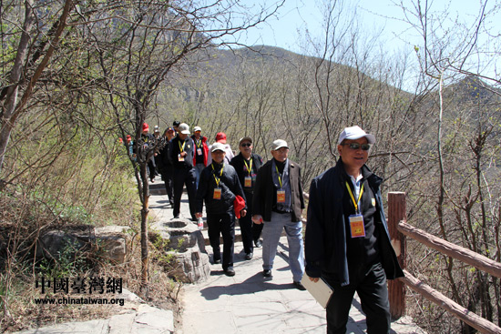 4月10日上午,由近70位臺灣統派人士和退役將領組成的參訪團一行來到焦作市修武縣,參觀世界地質公園云臺山。(中國臺灣網 李丹 攝)