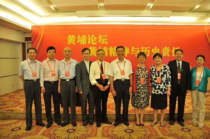參加論壇的黃埔親屬后代在論壇上合影留念,從左至右依次為田漢先生之孫歐陽維、鄭庭笈將軍之子鄭心校、周士第將軍之子周勇、衛立煌將軍之孫衛智、謝晉元將軍之子謝繼民、徐向前元帥之子徐小巖、程子華將軍之女林爽爽、陳賡大將之女陳知進、戴安瀾將軍之子戴澄東、趙一曼之孫女陳紅。