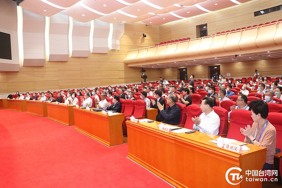 全國政協副主席、臺盟中央主席、中國和平統一促進會副會長蘇輝致辭。(中國臺灣網發)