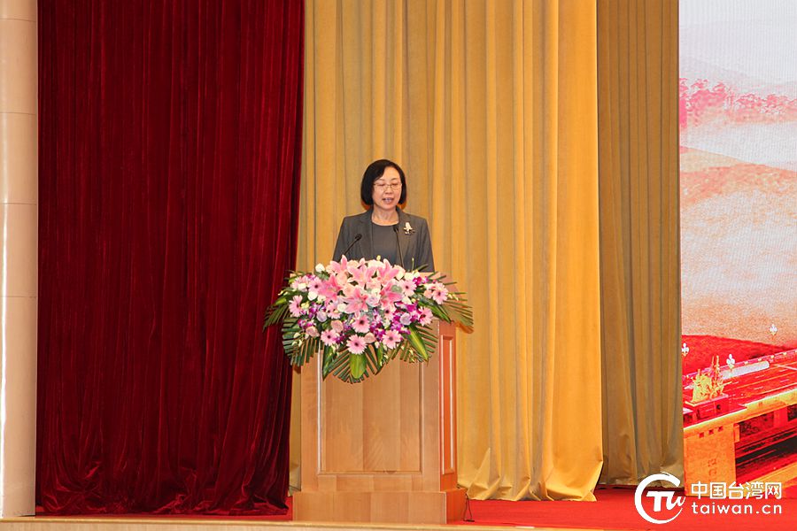 全國政協副主席、臺盟中央主席、中國和平統一促進會副會長蘇輝致辭。(中國臺灣網發)
