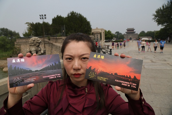 會上還發布了盧溝橋景區首次推出的限量版《紀念全民族抗戰爆發80周年珍藏版門票》,包括成人票和學生票兩個珍藏版本,7月7日以后來盧溝橋參觀游覽的游客可以購買;現場,中國郵政集團還發行了“七七事變”八十周年紀念首日封;豐臺區文聯還現場展示了為紀念全民族抗戰爆發80周年而全區動員征集的詩歌作品《盧溝橋,抗戰烽火淬煉的詩篇》。