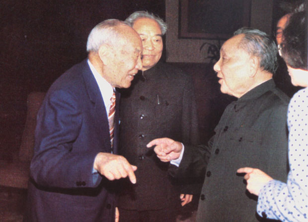 1990年5月16日,鄧小平同志與侯鏡如會長親切交談