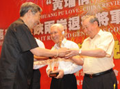 第二屆海峽兩岸退役將軍高爾夫球邀請賽27日落幕。來自兩岸的40余位退役將軍在為期三天的比賽中揮桿球敘,把酒言歡,結下深厚感情。在27日舉行的頒獎儀式上,原全國人大常委會副委員長許嘉璐、原總參謀部副總參謀長熊光楷專程到場慶賀,并為獲獎將軍頒獎。