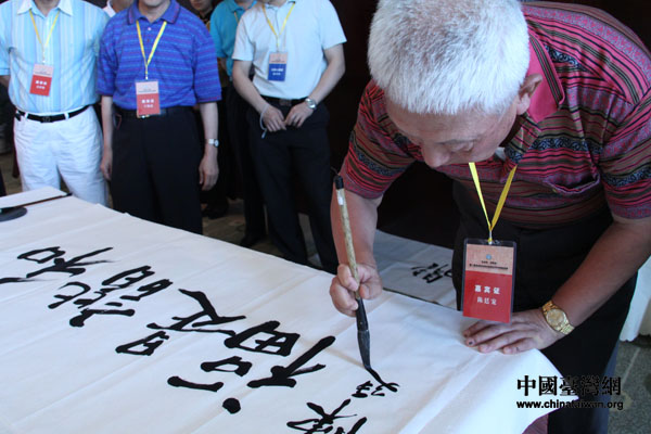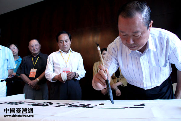 海協會副會長王在希揮毫潑墨,筆下力拔千鈞(中國臺灣網 李徽 攝)