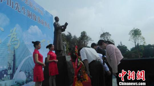 中新網泉州11月15日電 (廖靜)適逢孫中山先生誕辰150周年,為了紀念民主革命先行者孫中山先生,傳承和弘揚“天下為公”的精神,激勵后人為實現中華民族的偉大復興做出新貢獻,孫中山孫女孫穗芳女士向福建泉州華光職業學院捐贈2.4米孫中山銅像一尊。