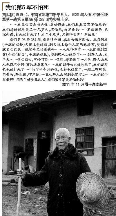 兩次入緬許保光(1921-)湖南省邵陽市洞口縣人。新38師112團(團長陳嗚人)1營(營長李克已)2連士兵,曾參加第一、二次入緬作戰。2011年11月攝于湖南洞口