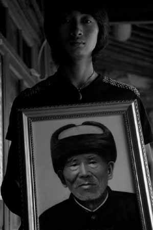 2005年7月19日,在施甸縣由旺鎮蔣家灣,我們向一位年輕帥氣的小伙打聽一位叫余朝芝的抗戰老兵。巧的是,他就是這位老人的孫子,他告訴我們:爺爺前幾天剛“老”了(去世)。