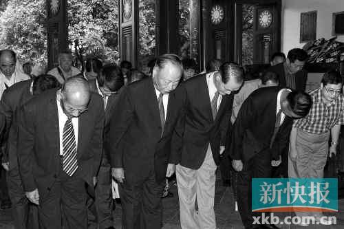 ■代表團成員共同拜謁國殤墓園,前排從左起分別為黃埔軍校同學會會長林上元、臺灣退役上將王文燮、臺灣退役中將鐘家聲、中華人民共和國十大元帥之一徐向前之子徐小巖。