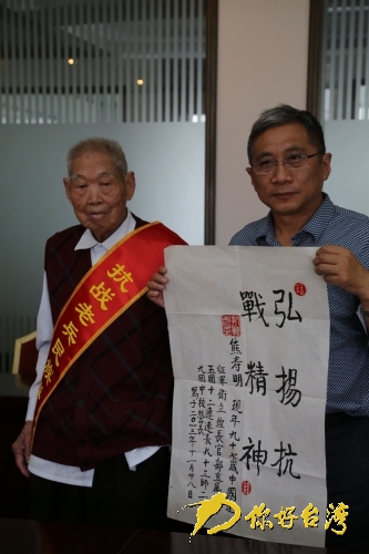 黃埔老兵熊壽明手印。熊壽明老人生于1917年,畢業于中央陸軍軍官學校六分校交輜科十四期。曾參加桂南會戰、長沙會戰,后參加遠征軍入緬作戰和云南松山戰役。(你好臺灣網圖)