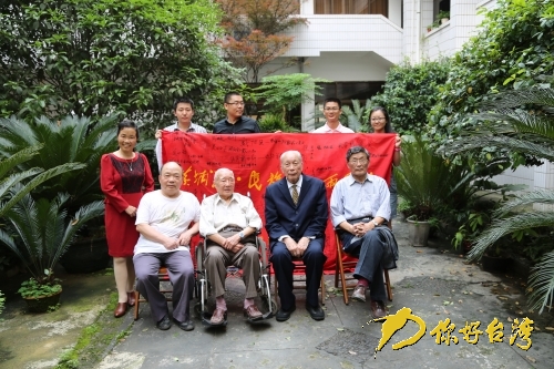 “黃埔魂 民族心 兩岸情”采訪團與黃埔老人廖有為先生、黎克忠先生及部分在桂黃埔二代合影(你好臺灣網 圖)