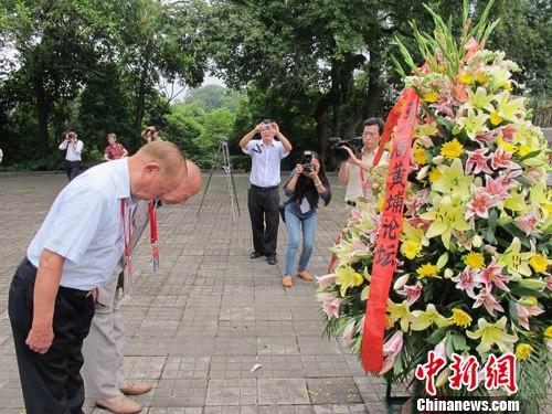 圖為與會代表向東征烈士墓鞠躬。中新社發 楊喆 攝