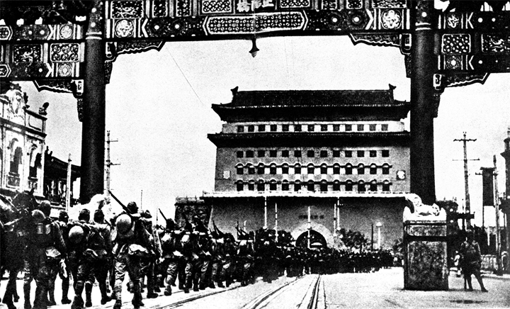 1937年7月29日和30日,北平、天津相繼淪陷。圖為日軍侵入北平正陽門。