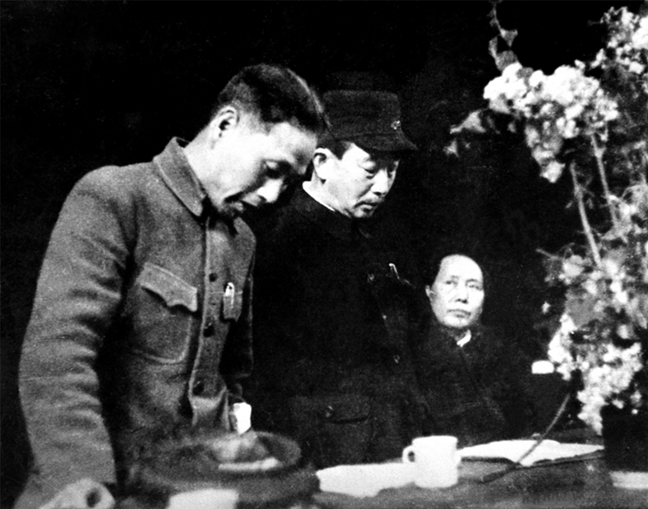日本共產黨員野坂參三(即岡野進)等在延安組織日本人民反戰同盟延安支部,之后各抗日根據地相繼成立了反戰同盟支部。圖為野坂參三(中)在延安。