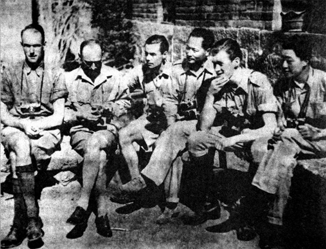 世界各國的新聞工作者紛紛來華,報道中國抗戰實況,揭露日本侵略行徑,呼吁世界人民了解中國,支持中國。圖為臺兒莊戰役時,外國記者到前線采訪。