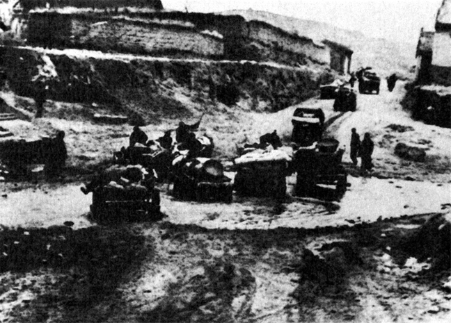 蘇聯是首先向中國提供援助的國家。圖為裝載蘇聯援華物資的卡車行進在西北公路上。