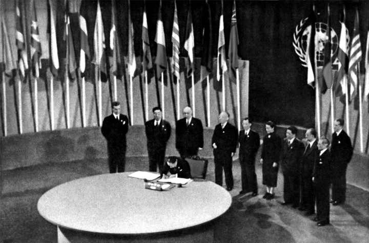 中國政府代表顧維鈞第一個在聯合國憲章上簽字。
