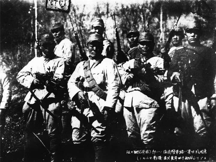 1936年1月起,東北人民革命軍相繼改編為東北抗日聯軍。到1937年秋,東北抗日聯軍已經發展到11個軍、3萬余人。圖為在東北密林中活動的抗聯戰士。