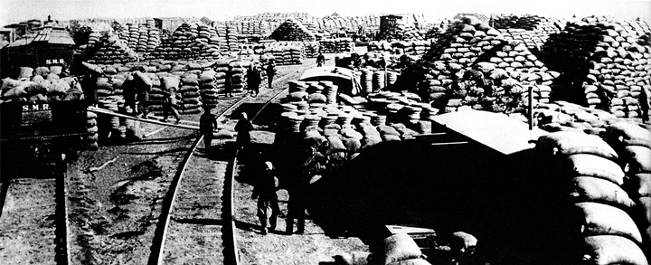 日本侵占中國東北后,瘋狂掠奪各種資源,在政治、經濟、文化等領域對東北人民實行法西斯殖民統治。圖為日軍將搶掠的物資堆積在長春車站。