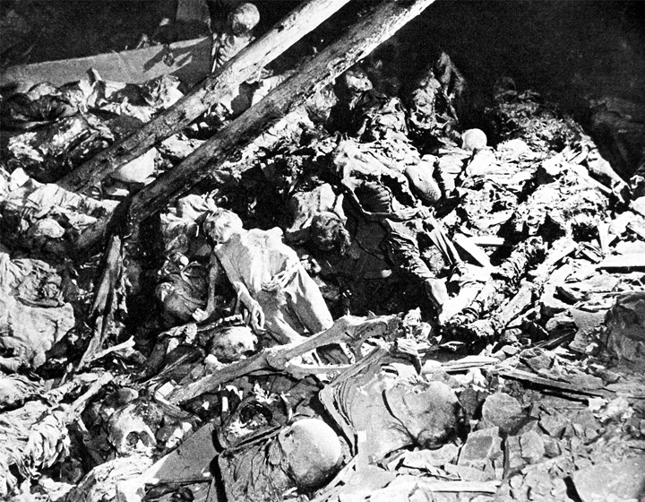 日軍對山西煤炭資源進行掠奪性開采。期間,山西大同煤礦礦工死亡高達6萬人。圖為大同南溝萬人坑。