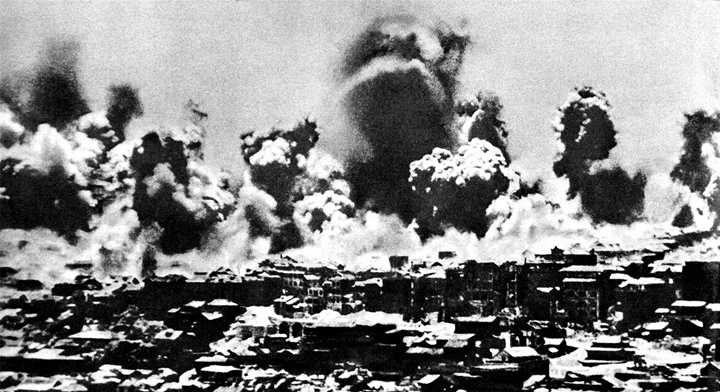 日軍對中國重慶實行狂轟濫炸,美麗的山城處在一片火海之中。