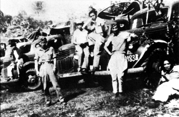 為支援滇緬公路運輸,南洋華僑機工紛紛回國。圖為南僑機工在滇緬公路上。