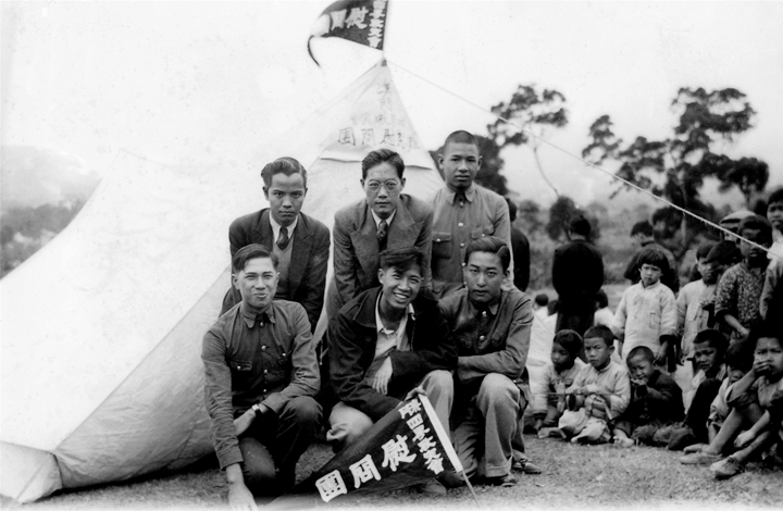 1937年8月12日,澳門學術界、音樂界、體育界、戲劇界成立澳門四界救災會支援抗戰。圖為四界救災會組織慰問團下鄉工作。