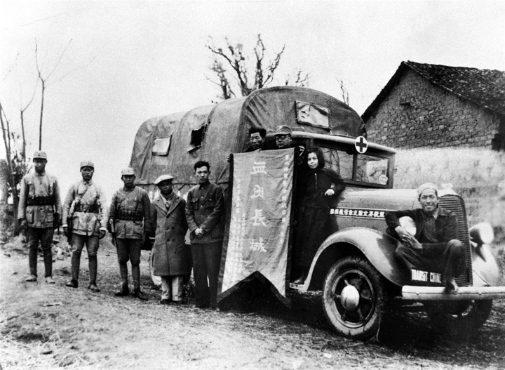 香港九龍工人給陜甘寧邊區捐贈的救護車。
