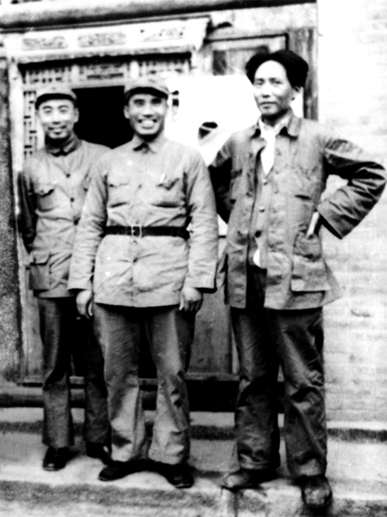 毛澤東(右)、朱德(中)、周恩來(左)在延安。
