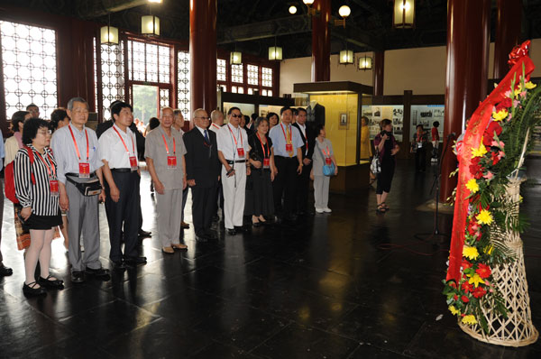 出席紀念辛亥革命100周年黃埔論壇的全體來賓在中山紀念堂向孫中山像敬獻花籃