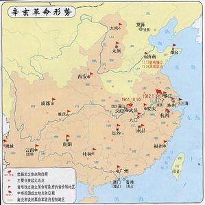 在清政府全力應付四川保路運動的時候,湖北新軍中文學社、共進會等革命團體乘機發動武昌起義,揭開了辛亥革命轟轟烈烈的一幕。9月下旬,革命黨人感到形勢緊迫,決定于10月6日(中秋節)發動起義,后由于形勢瞬息變化,起義推遲。10月9日(八月十八日),在預定起義的那一天,共進社負責人孫武在漢口裝配炸彈時不慎爆炸,湖廣總督下令閉城搜查,漢口和武昌的起義指揮機關遭到破壞,一些起義領導人被捕、被殺或避匿。在這種情況下,新軍各標營中革命士兵開始主動行動。10日晚7時,武昌城外塘角的輜重營和城內工程第八營幾乎同時發動,各標營繼起,經一夜苦戰,11日晨革命軍占領總督署,全城光復,首義成功。漢陽、漢口也先后為革命軍占領。11日,起義士兵聚集到湖北咨議局,在咨議局議長湯化龍等人的參與下,宣布成立中華民國湖北軍政府。革命黨的領袖們未親身參加起義,缺乏政治經驗的起義士兵對自己掌握政權沒有信心,清湖北新軍協統 黎元洪 在革命士兵的槍口逼迫下任湖北軍政府都督。